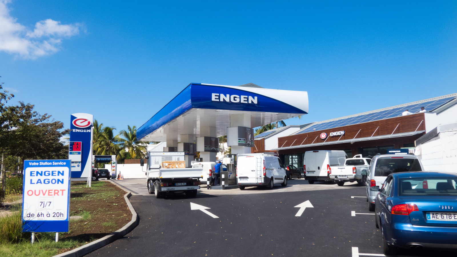 Enseignes, totems (lumineuse), spoliers, signalétiques extérieure et ILV. Située à la Saline-Les-Bains.